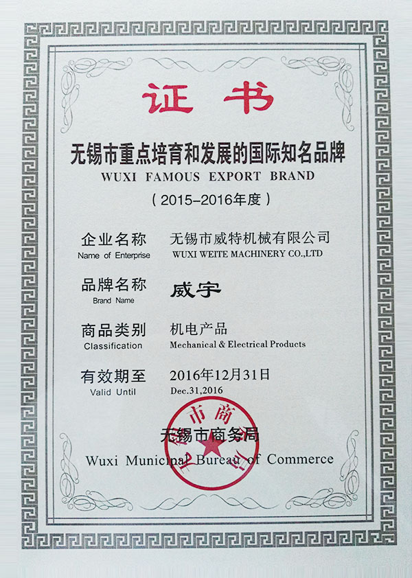 | Wuxi Weite Machinery Co., Ltd. Address: Qianzhou Town, Huishan District, Wuxi City, Jiangsu Province After-sales service telephone:0510-68756626 Telephone:0510-68002999 0510-83395166 Fax:0510-68006664 Foreign trade:0510-68783338 Email:sissifeya@gmail.com Web site:www.weiyujx.com |