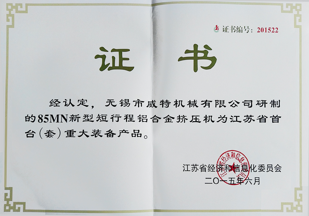 85MN首台套证书